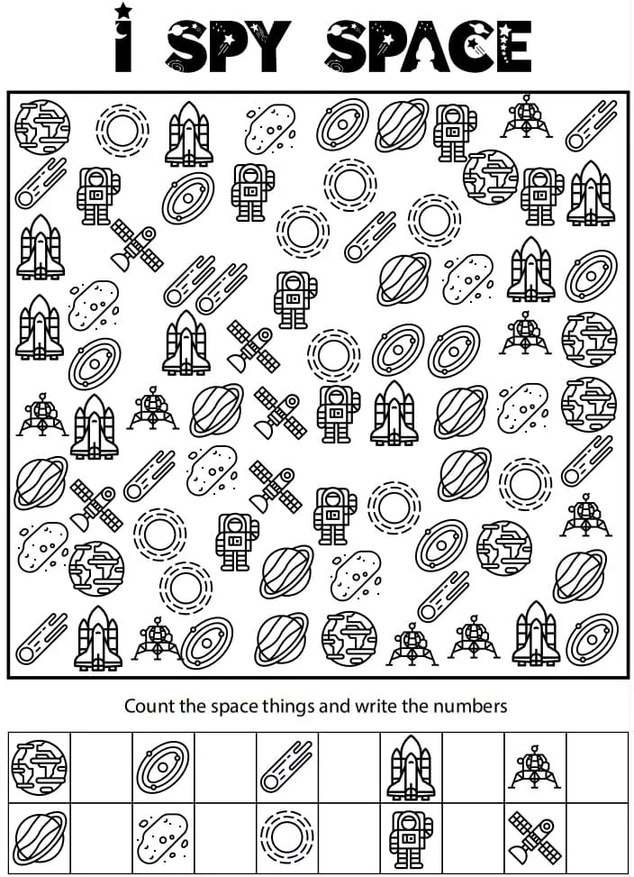 Coloring description : Download Printable I Spy Space Coloring Page
