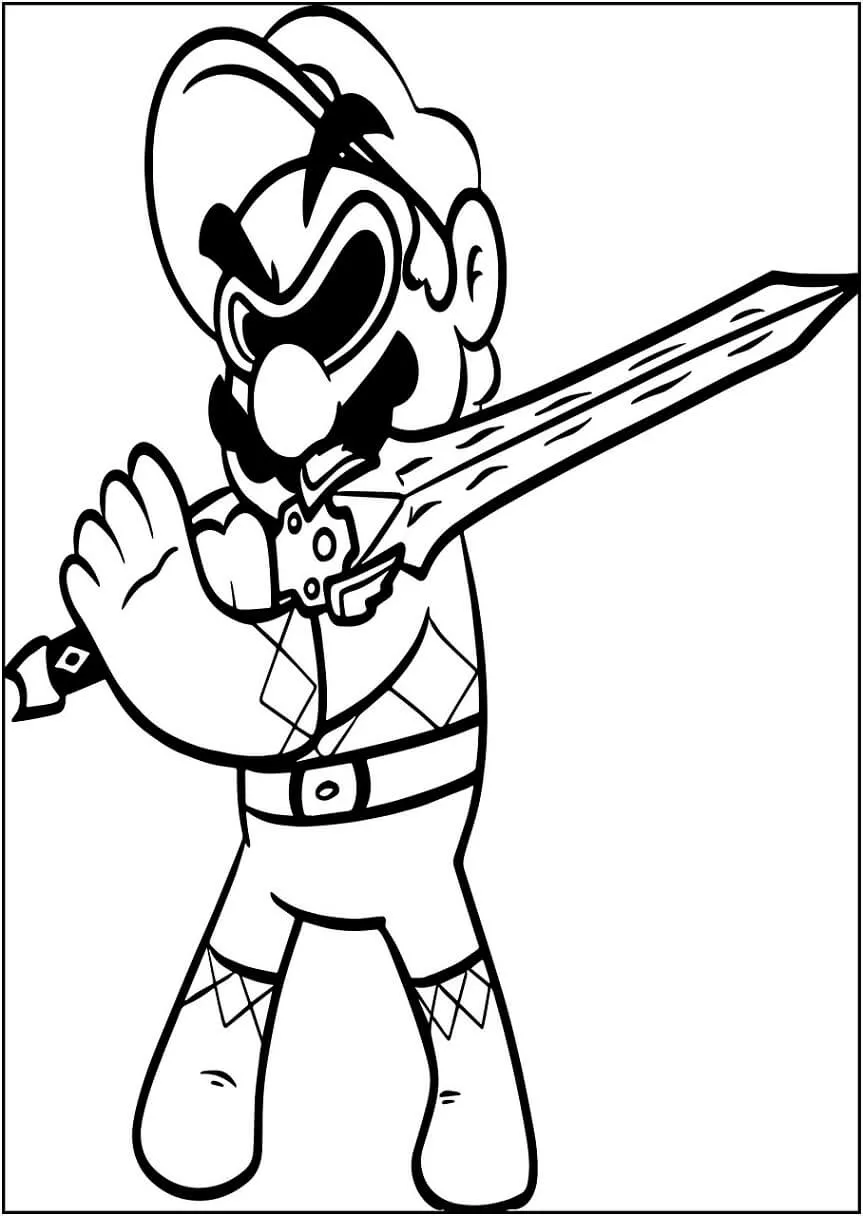 Coloring description : Download Printable Mario with Sword Coloring Page