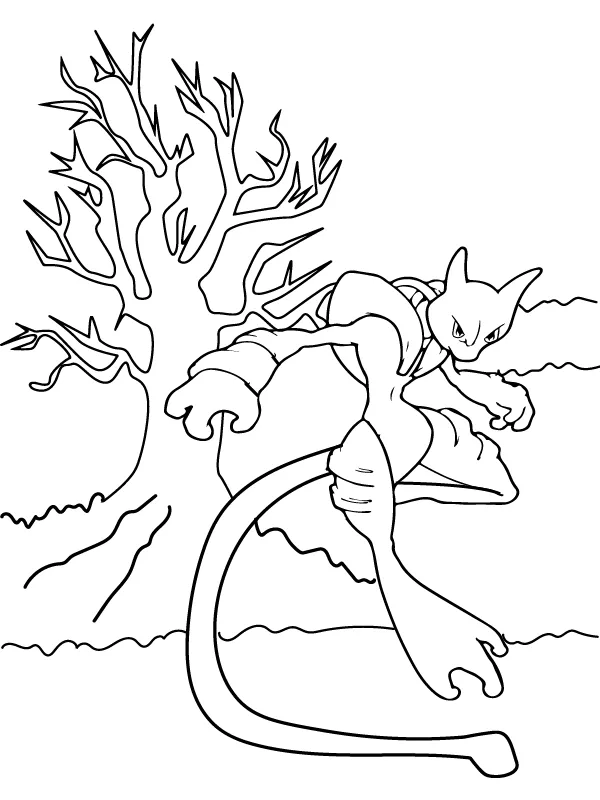 Coloring description : Download Printable Mighty Mewtwo in Action Coloring Page