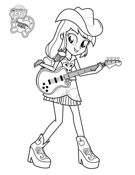 Coloring description : Download Printable Applejack Playing Guitar Coloring Page
