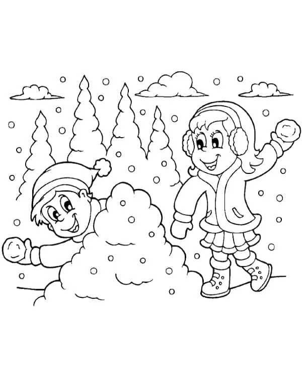 Coloring description : Download Printable Kids in Snowball Fight Coloring Page