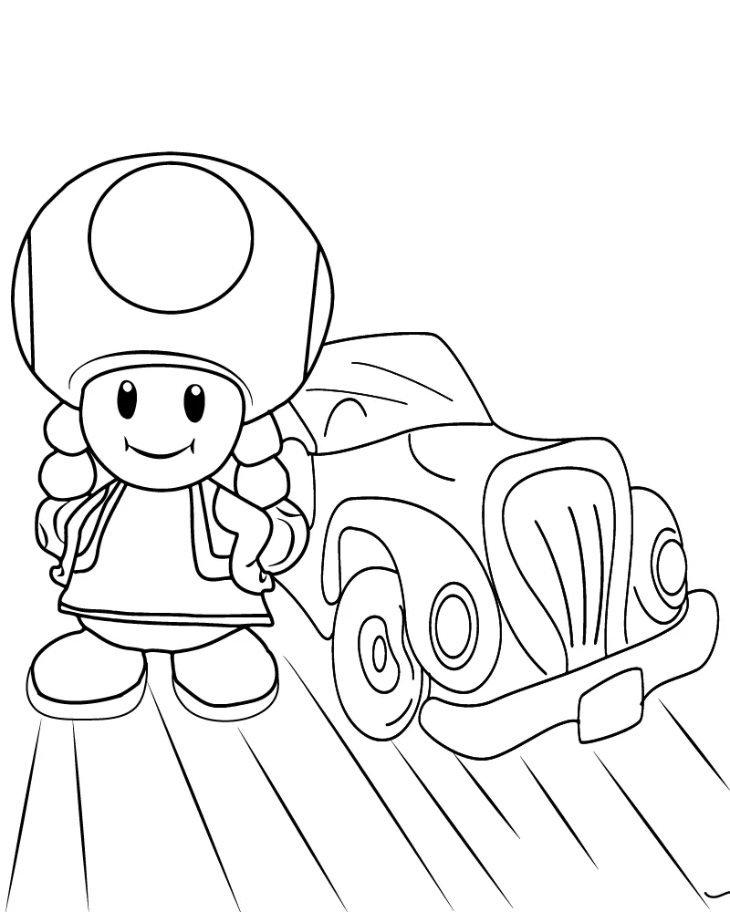 Coloring description : Download Printable Toadette and Favorite Car Coloring Page
