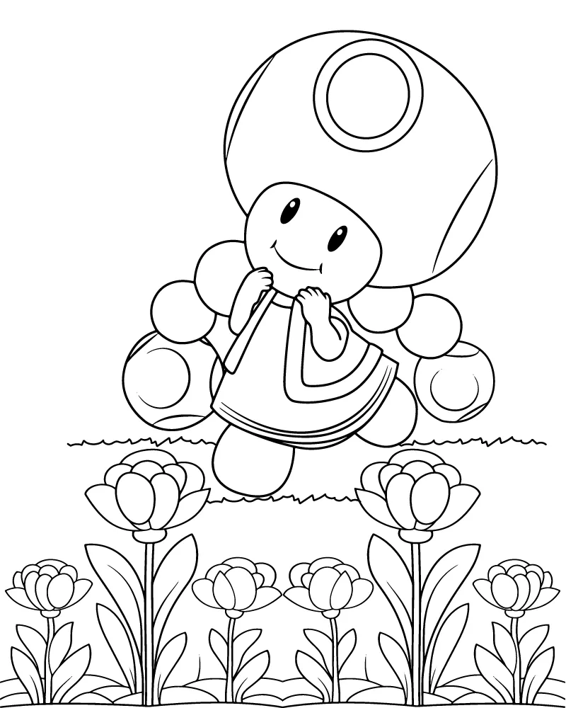 Coloring description : Download Printable Toadette and Flowers Coloring Page