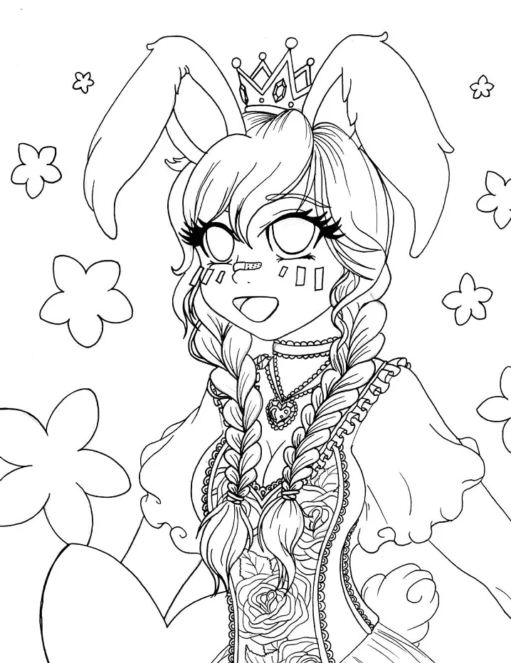 Coloring description : Download Printable Girl with Bunny Ears Coloring Page