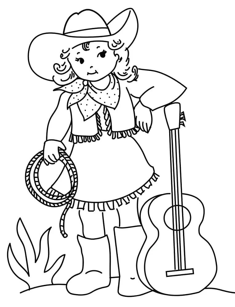 Coloring description : Download Printable Cowgirl and Guitar Coloring Page