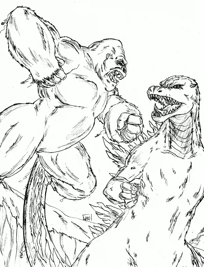 Coloring description : Download Printable Godzilla vs King Kong Coloring Page