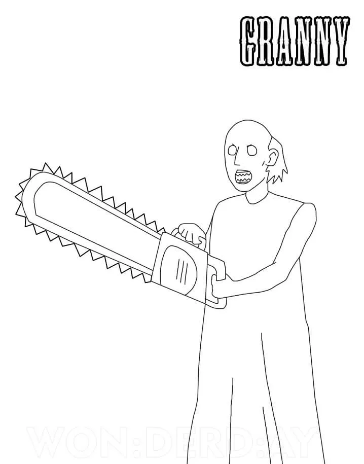 Coloring description : Download Printable Granny with Chainsaw Coloring Page