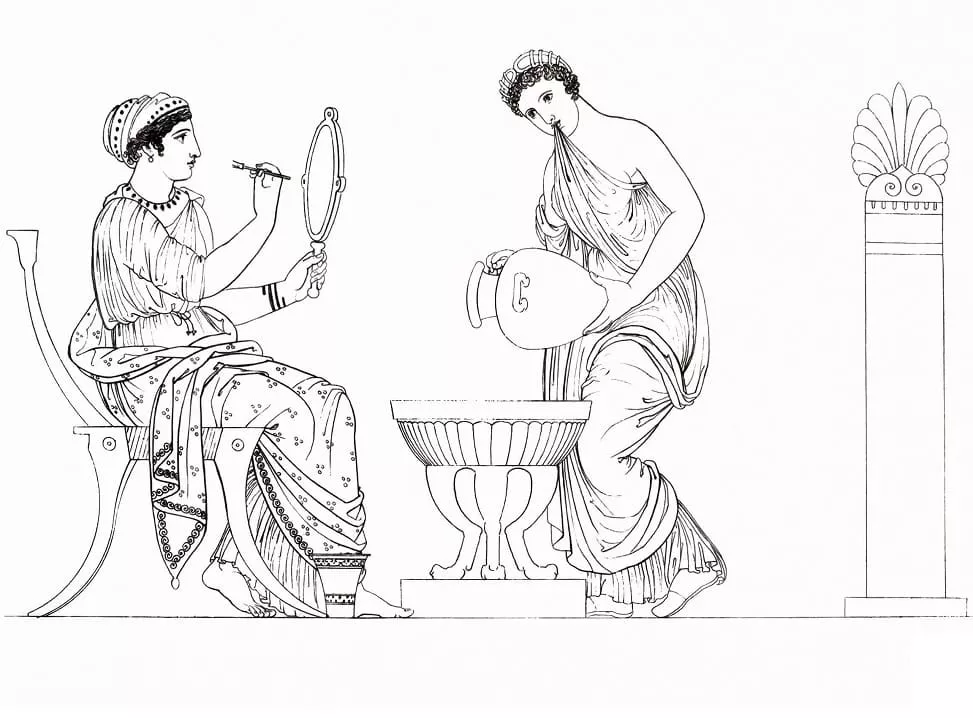 Coloring description : Download Printable Grecian Lady Painting Her Face Coloring Page
