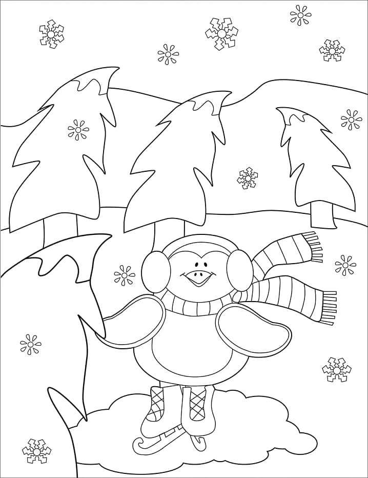Coloring description : Download Printable Adorable Christmas Penguin Coloring Page