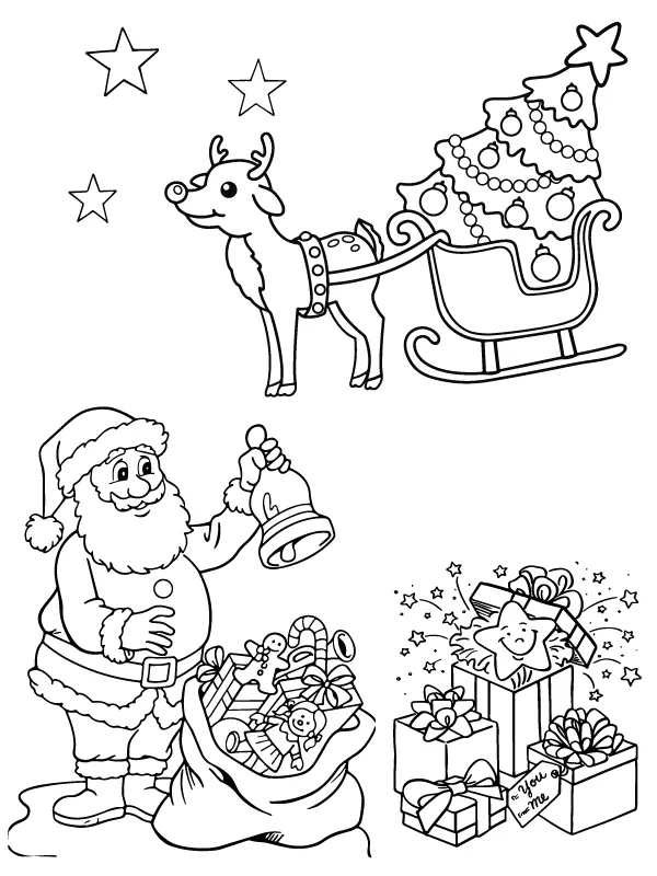 Coloring description : Download Printable Christmas Sleigh with Reindeers Coloring Page