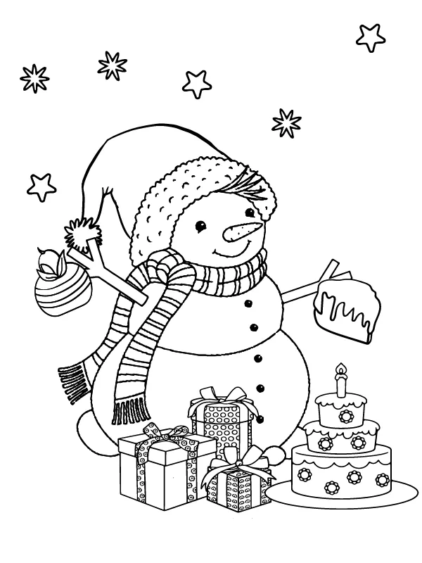 Coloring description : Download Printable Christmas snowman with gift box in hand Coloring Page