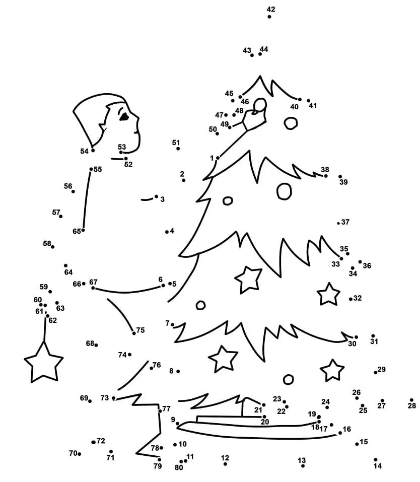 Coloring description : Download Printable Decorating Christmas Tree Dot to Dots Coloring Page