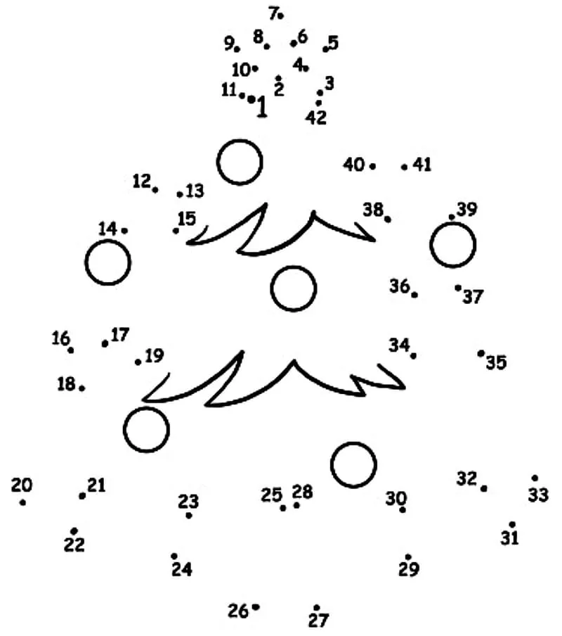 Coloring description : Download Printable Free Christmas Tree Dot to Dots Coloring Page