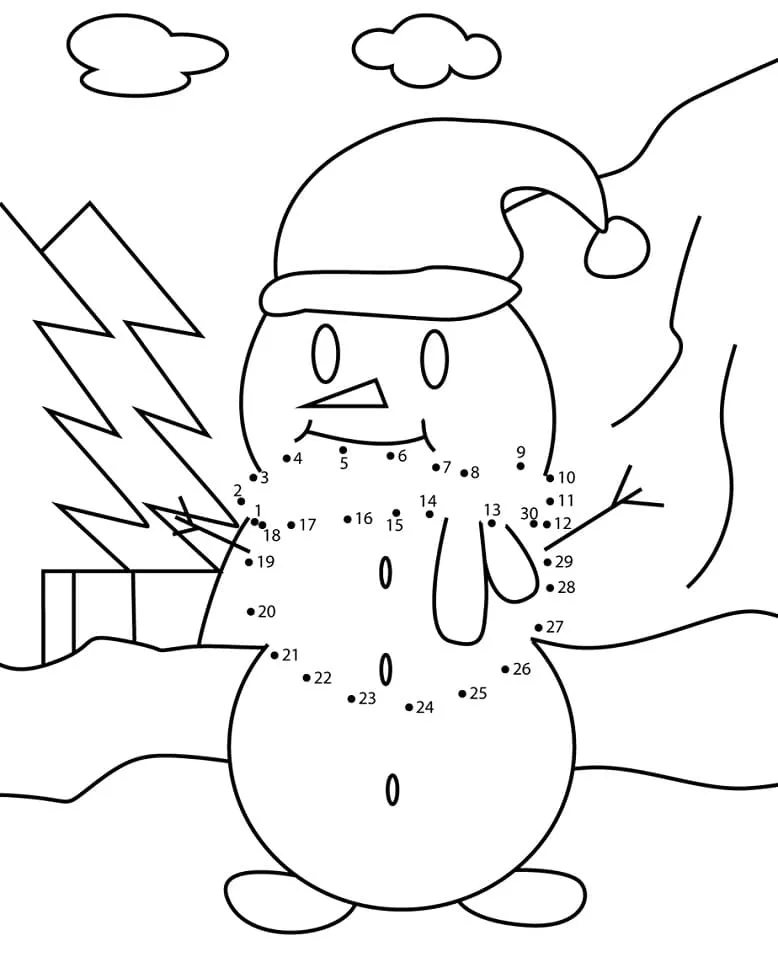 Coloring description : Download Printable Christmas Snowman Connect The Dots Coloring Page
