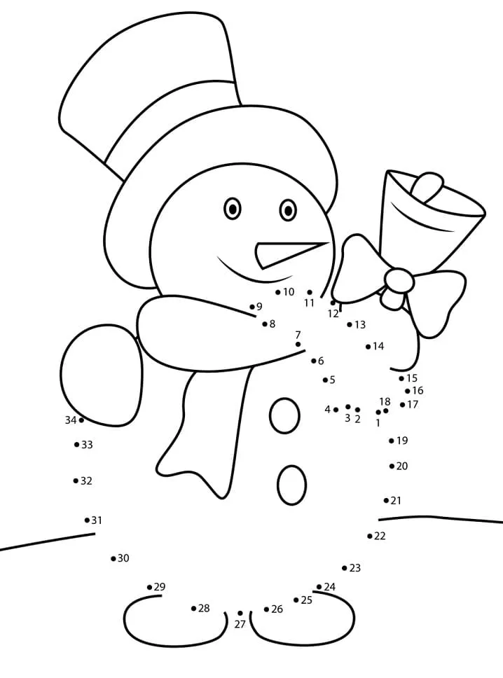 Snowman with Bell Connect The Dots