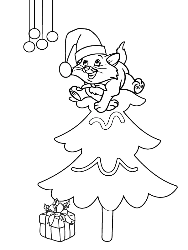 Coloring description : Download Printable Cute Cats Christmas Picture to Color Coloring Page
