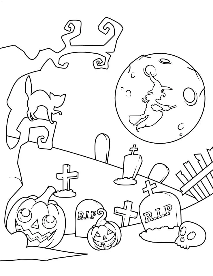 Coloring description : Download Printable Cute Halloween Cemetery Coloring Page