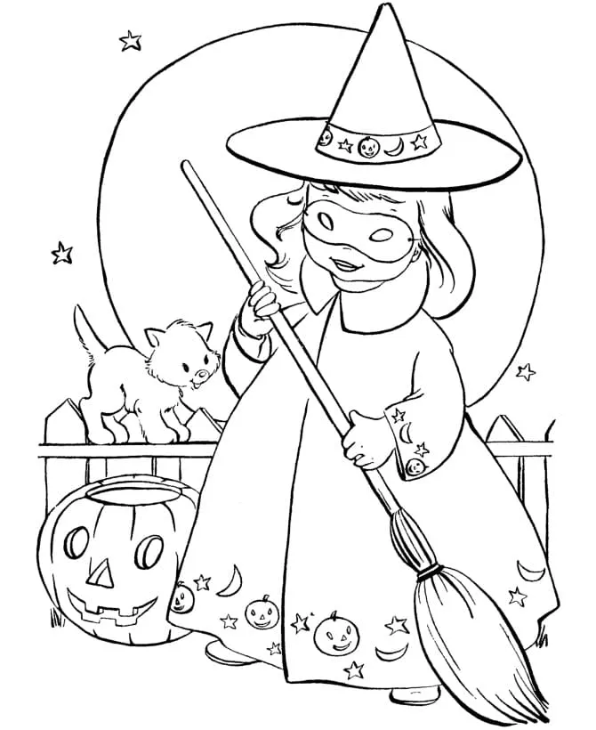 Coloring description : Download Printable Cute Witch Halloween Coloring Page