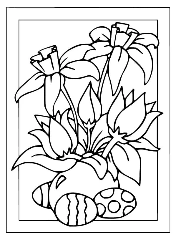 Coloring description : Download Printable Easter Eggs and Flowers Card Coloring Page