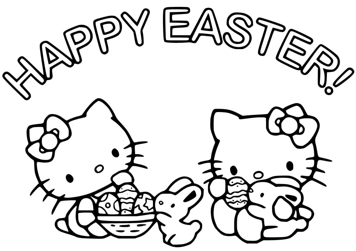 Coloring description : Download Printable Happy Easter with Hello Kitty Coloring Page