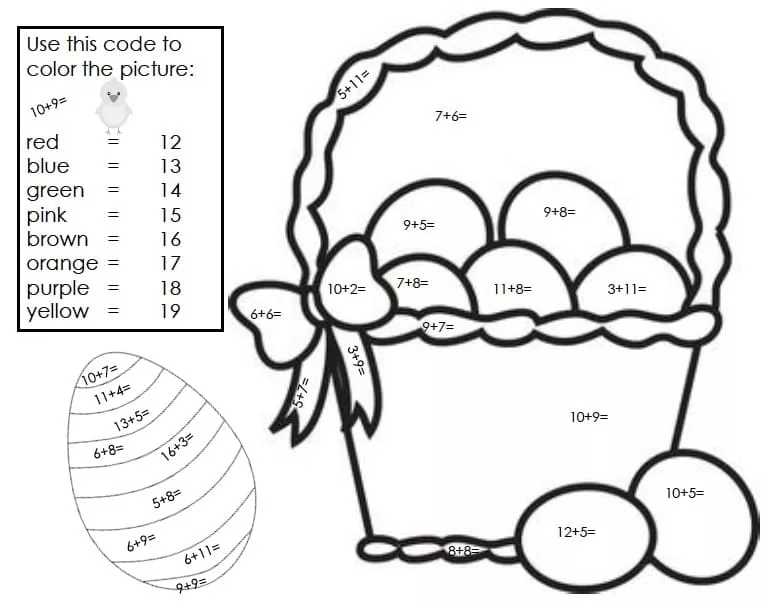 Easter Eggs and Basket Color by Number