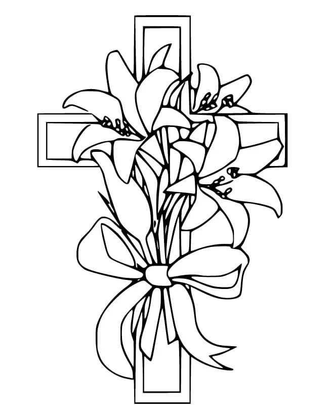 Coloring description : Download Printable Flowers and Easter Cross Coloring Page