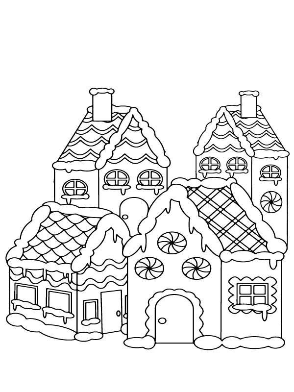 Coloring description : Download Printable Gingerbread Many house Coloring Page