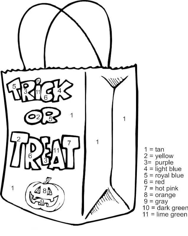 Coloring description : Download Printable Trick or Treat Color by Number Coloring Page