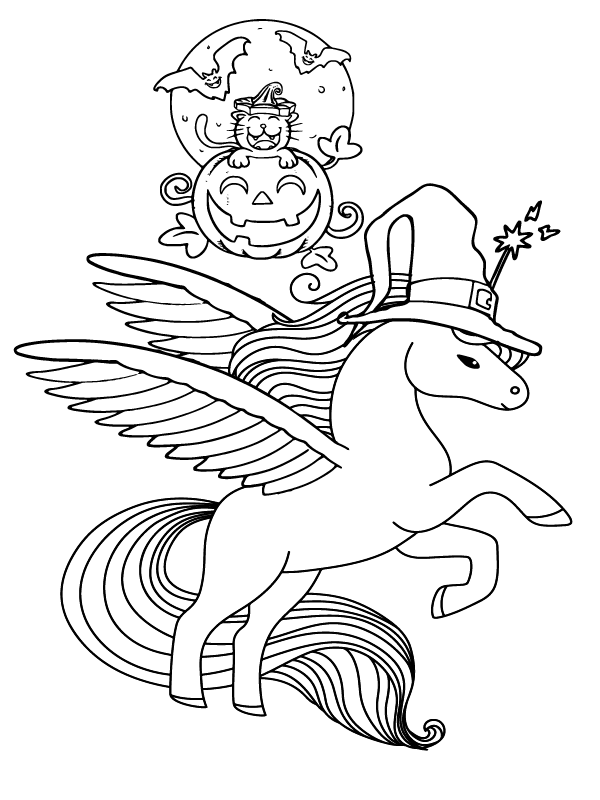 Coloring description : Download Printable Magical Halloween Unicorn Coloring Page