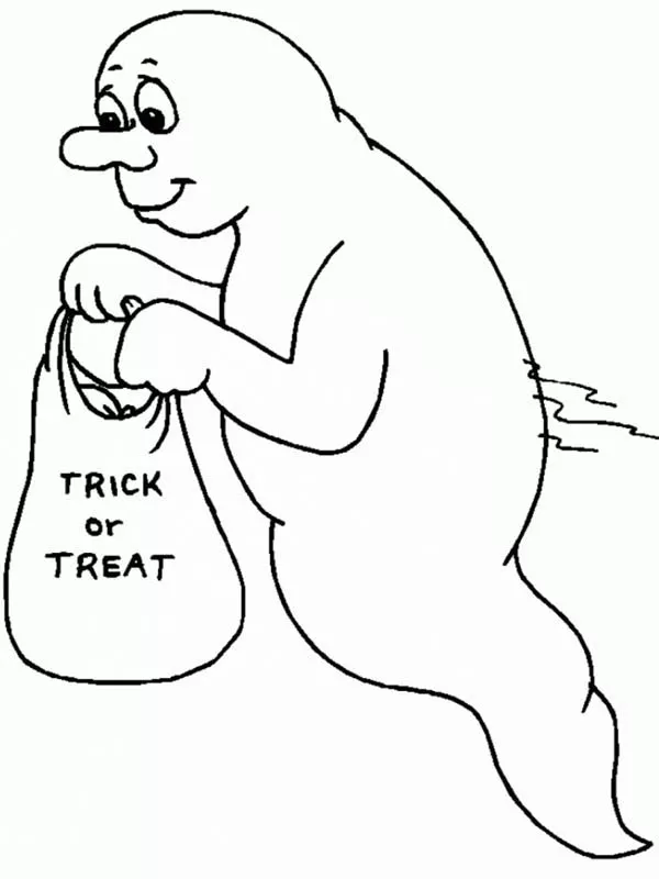 Coloring description : Download Printable Ghost Playing Trick Or Treats Coloring Page