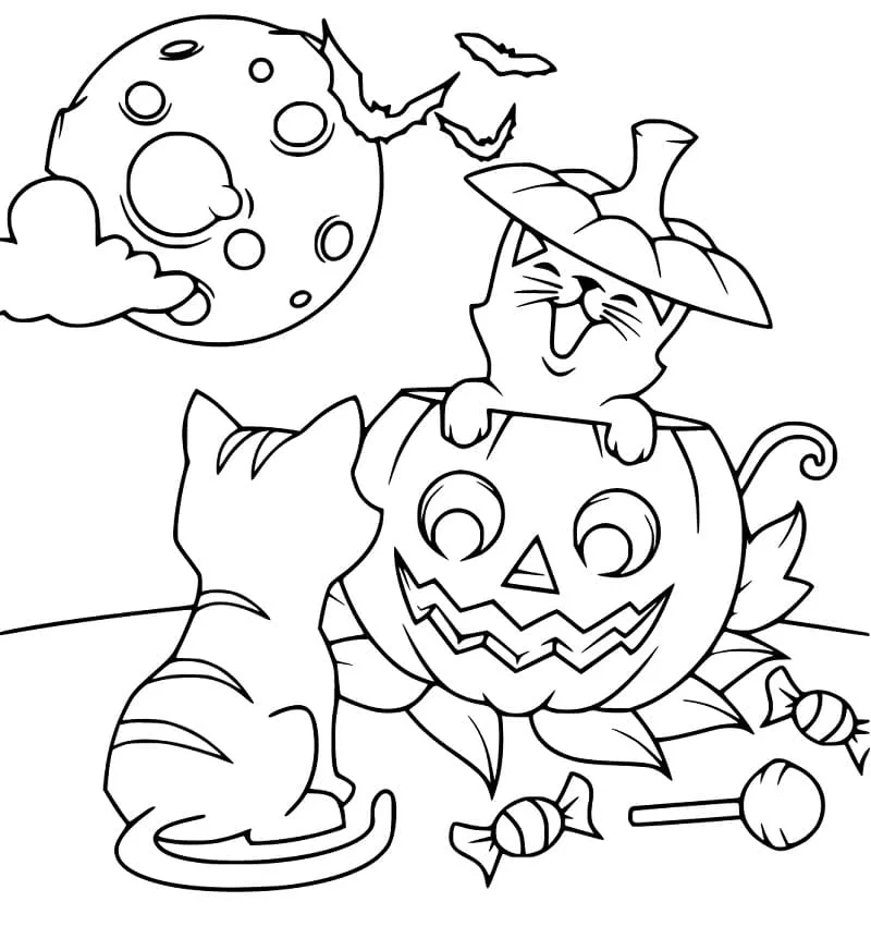 Coloring description : Download Printable Happy Halloween Cats Coloring Page