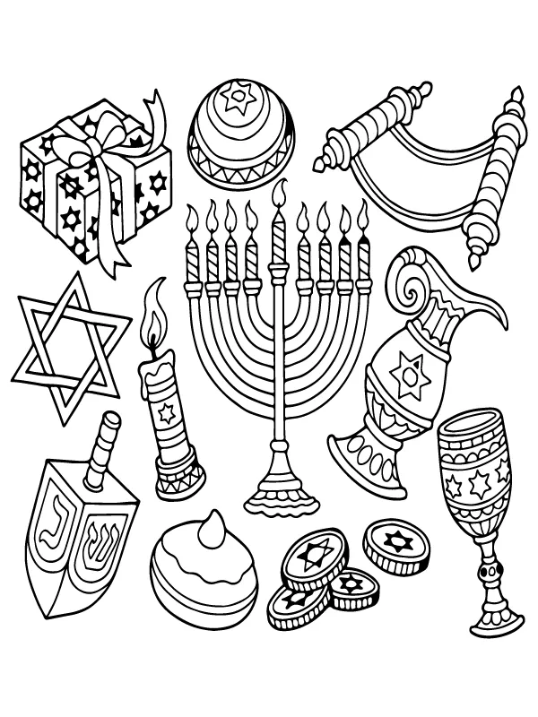 Coloring description : Download Printable Hanukkah Symbols Coloring Page