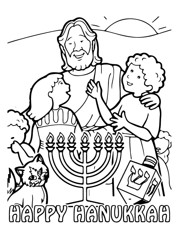 Coloring description : Download Printable Happy Hanukkah Celebration Coloring Page