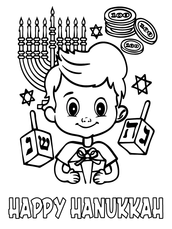 Coloring description : Download Printable Smiling Kid Holding Gift Coloring Page