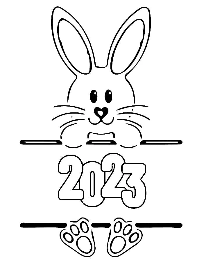 Coloring description : Download Printable Happy New Year 2023 with Rabbit Coloring Page