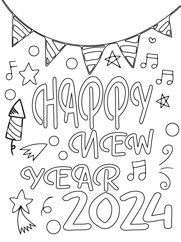 Coloring description : Download Printable 2024 Celebration Free Coloring Page