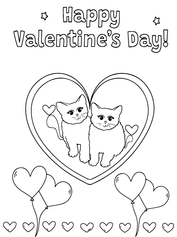 Coloring description : Download Printable Cute Kittens Happy Valentine’s Day Coloring Page