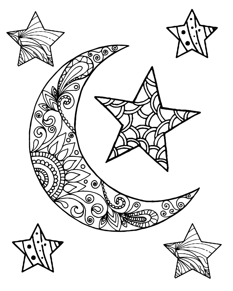 Coloring description : Download Printable Moon and Stars Coloring Page