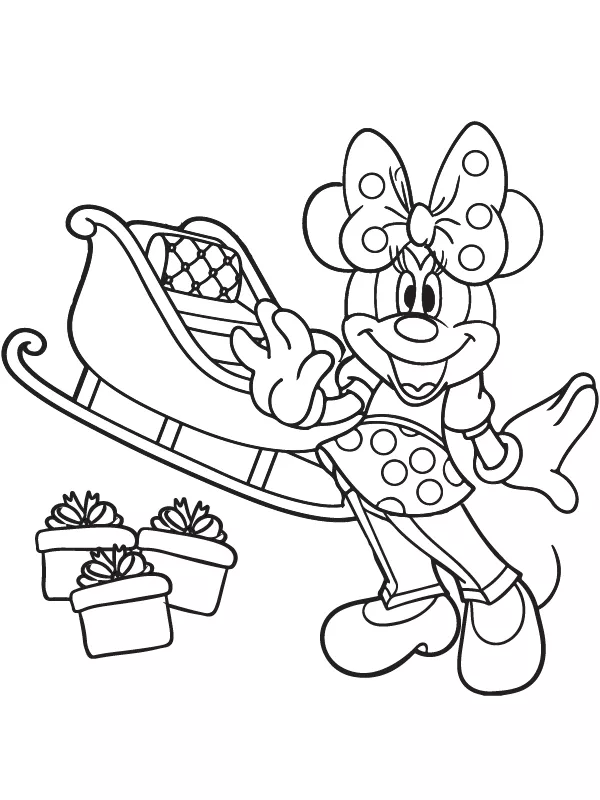Coloring description : Download Printable Upbeat Minnie Mouse Christmas Coloring Page