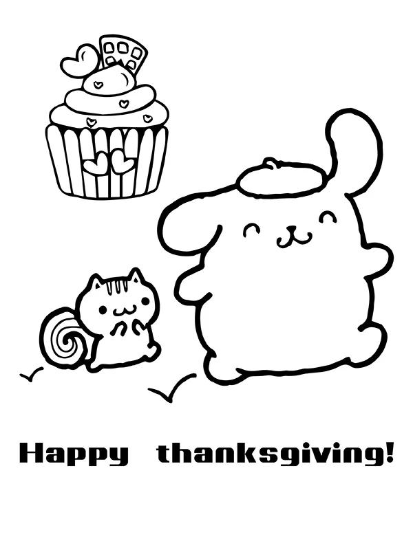 Coloring description : Download Printable Pompompurin with Cupcake Coloring Page