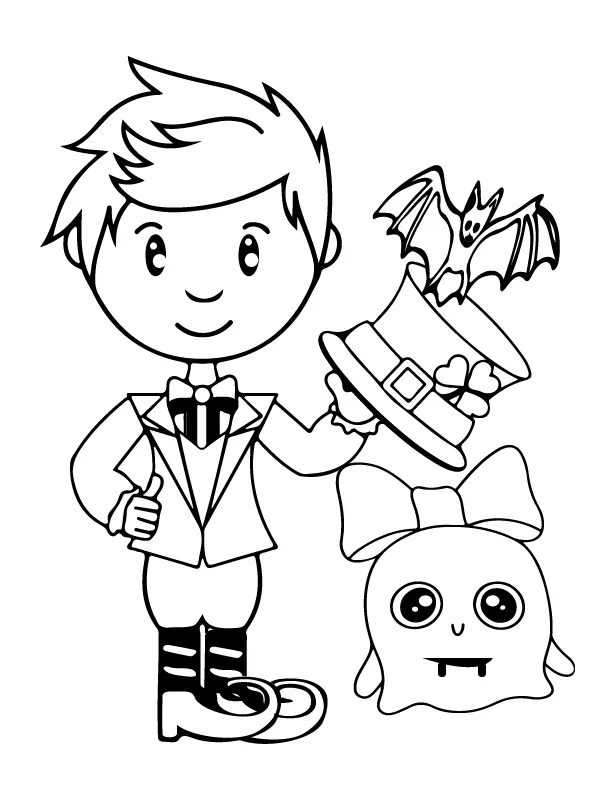 Coloring description : Download Printable Boy Magician Preschool Halloween Coloring Page