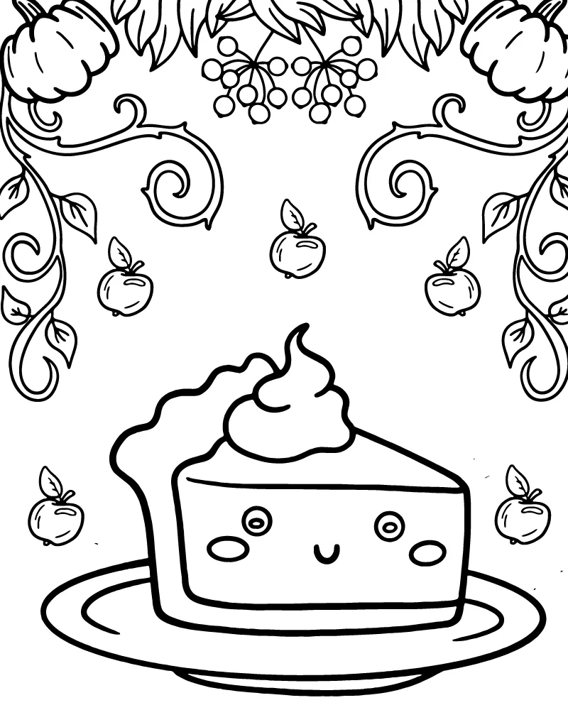 Pumpkin pie is a staple of Thanksgiving celebrations, symbolizing the warmth and coziness of the holiday season. Whether used as part of a festive art activity or a way to keep little hands busy while the real pie bakes in the oven, this coloring page is sure to delight. It also serves as a great conversation starter about Thanksgiving traditions and the history of this beloved dessert.