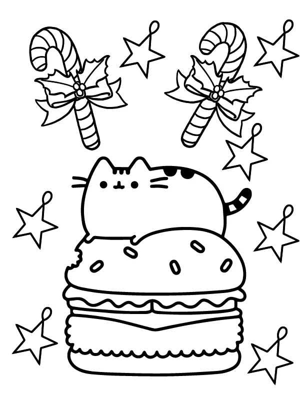 Coloring description : Download Printable Free Printable Christmas Pusheen and Candy Cane Coloring Page