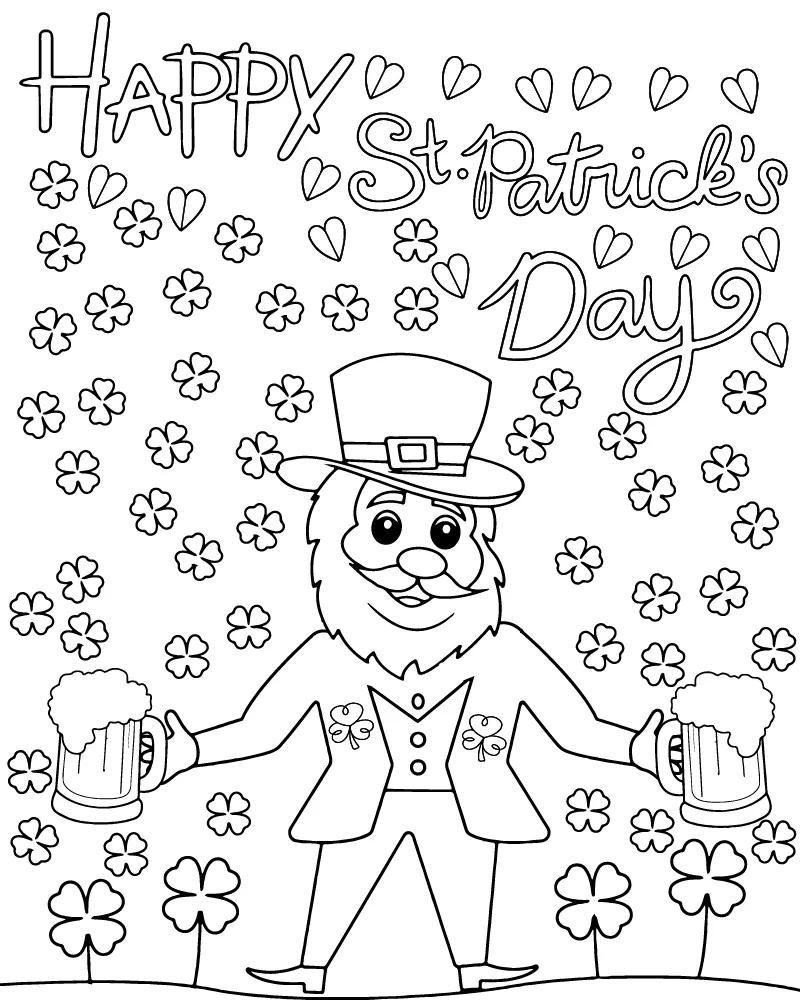 Coloring description : Download Printable Leprachaun with Beer Coloring Page