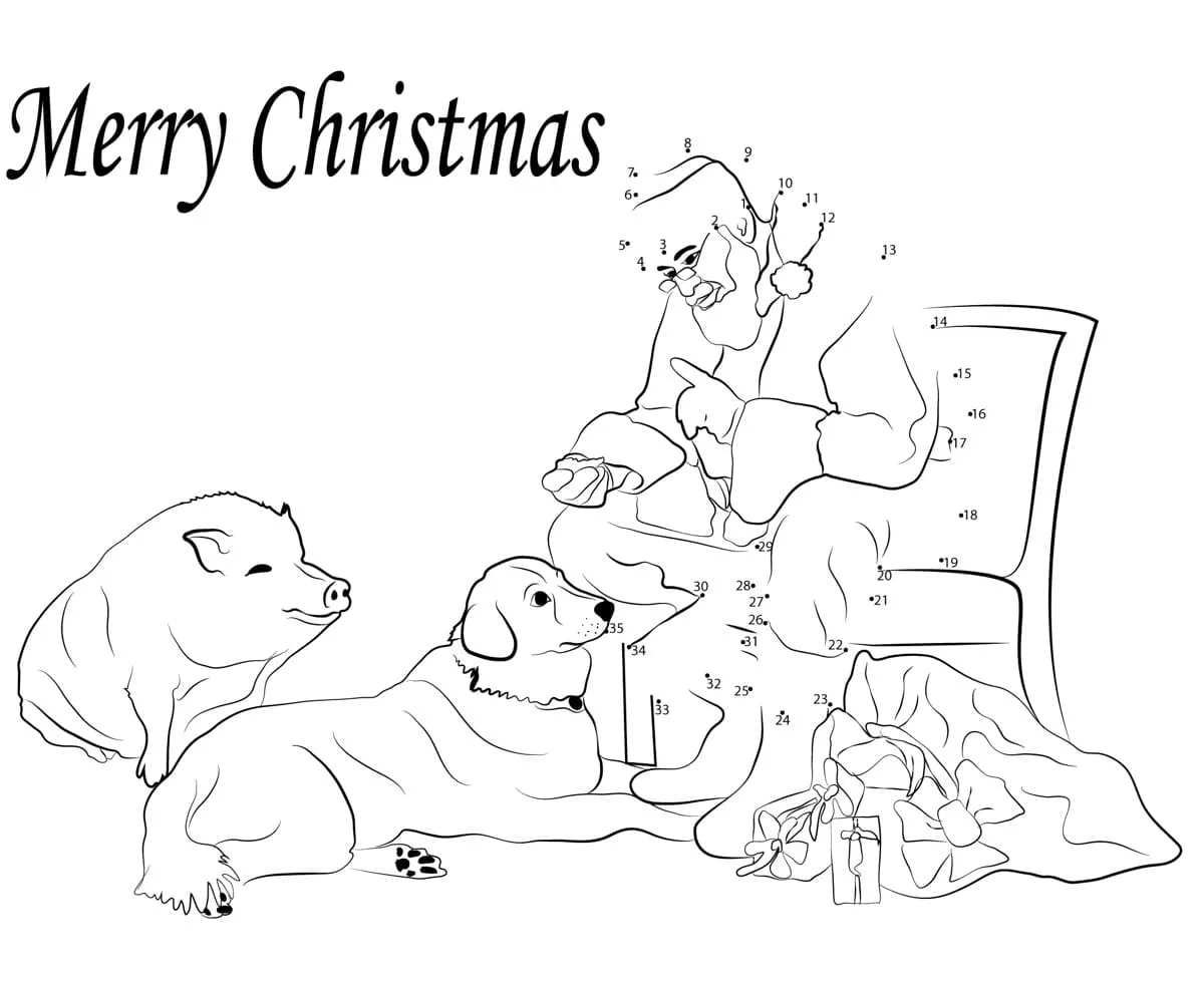 Coloring description : Download Printable Merry Christmas Santa Claus Dot to Dots Coloring Page