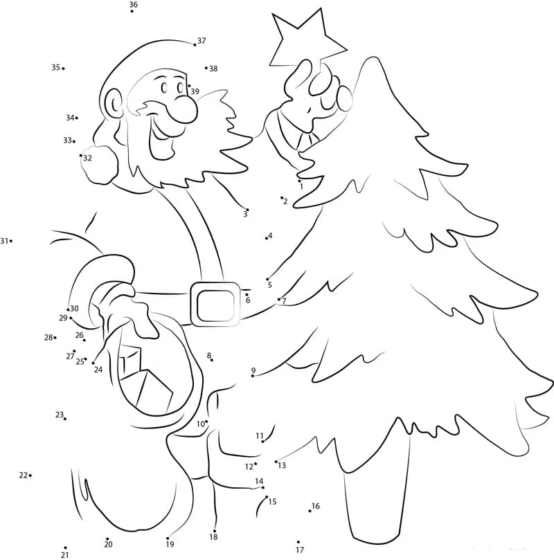 Coloring description : Download Printable Santa Claus and Christmas Tree Dot to Dots Coloring Page