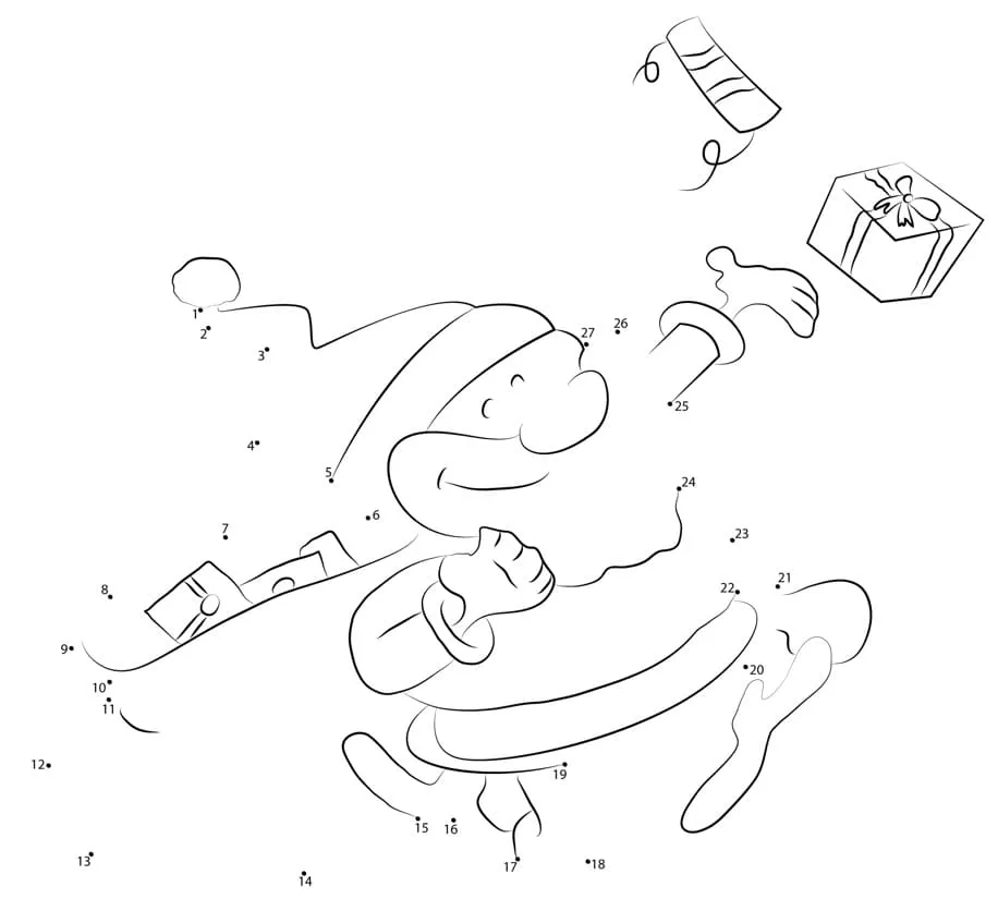 Coloring description : Download Printable Santa Claus Throwing Gifts Dot to Dots Coloring Page