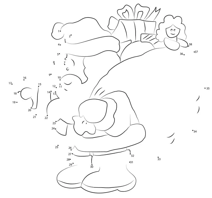 Coloring description : Download Printable Santa Claus with Gifts Dot to Dots Coloring Page