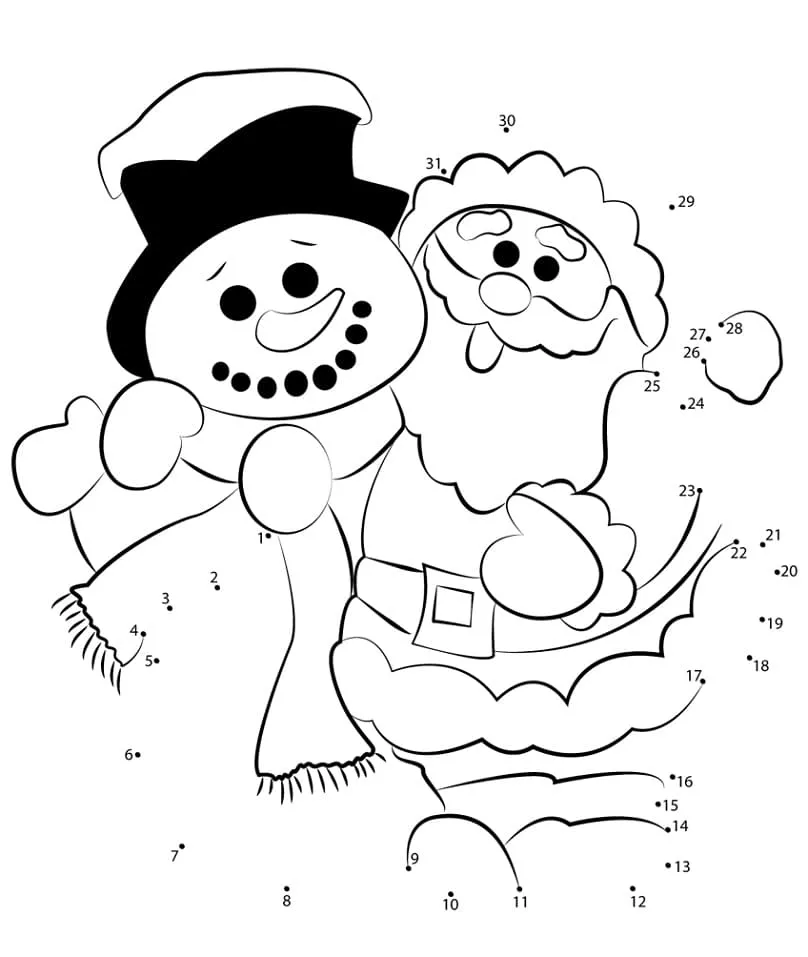 Coloring description : Download Printable Santa Claus with Snowman Dot to Dots Coloring Page