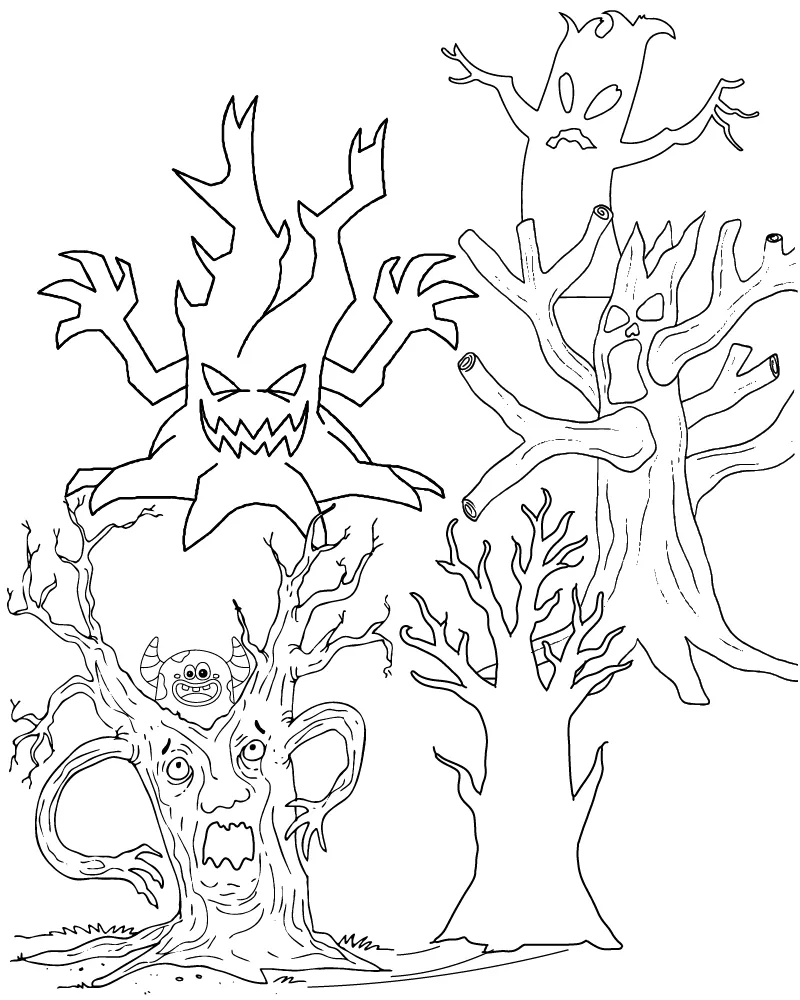 Coloring description : Download Printable Creepy Haunted Forest Coloring Page
